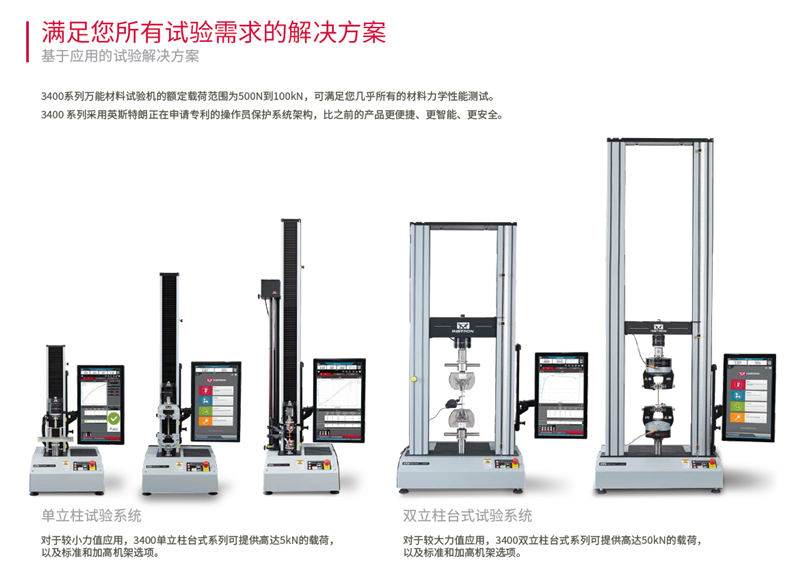 6800系列万能材料试验机适用于执行拉伸,压缩,弯曲,剥离,穿刺,摩擦和剪切等试验。该系统与lnstron附件手册中的数百种工装夹具兼容,并提供特定配置来执行符合Zui常用的GB,ASTM和ISO标准的试验。